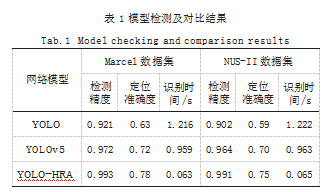 为验证本文所提出基于深度学习的YOLO-HRA手势识别算法的应用效果,分别在Marcel和NUS-II数据集上对模型进行了测试。试验平台配置CPU为Xeon E5-2666 v3,内存为32GB,GPU为GeForce RTX 4060,深度学习框架为TensorFlow-GPU2.7.0,编程环境为Python3.7。