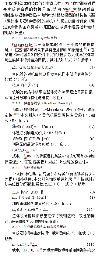 摘要:针对移动用户套餐数据高缺失、异质性强与字段耦合复杂导致插补精度与稳定性不足的问题,本文提出了一种基于改进生成对抗插补网络(Generative AdversarialImputation Nets,GAIN)的缺失值插补方法。该方法在GAIN框架上构建动态Hint矩阵,依据字段缺失率与相关性自适应调整Hint权重;在生成器中引入多头自注意力机制以显式建模跨字段依赖;采用Wasserstein距离与梯度惩罚稳定对抗训练,同时在生成器目标中加入加权重建误差项以提升数值精度。实验结果表明,改进GAIN算法在多项评价指标上优于基线方法,并在高缺失率下保持了较好的稳定性与插补精度。