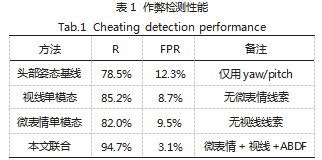 (2)本次考试需487名监考教师,实际仅需18名教师进行异常复核,HSR=82%。边缘节点硬件投入1.2万元/节点,预计2.3个学期收回成本,显著降低成本。