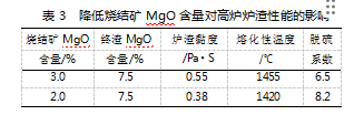降低 MgO 对烧结矿冶金性能及高炉冶炼的影响论文