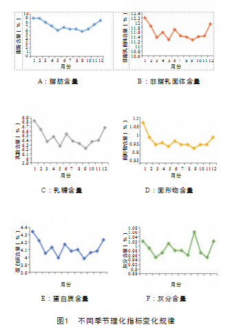 驼乳营养成分(脂肪、乳糖、蛋白质)与理化指标(非脂乳固体、总固形物)在泌乳阶段、季节周期及月份上均存在显著性变化。因此,根据骆驼乳质量,驼奶加工企业可以调整加工参数,使驼乳能够得到更好的利用。通过驼乳质量情况,骆驼养殖户及时发现和解决问题。