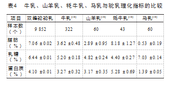 3.1双峰驼驼乳理化指标和牛乳、山羊乳等的比较