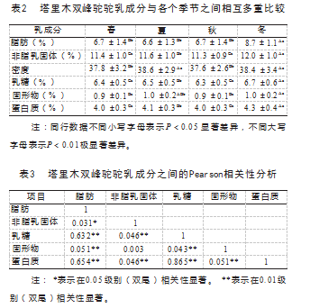 2.2不同季节塔里木双峰驼对驼乳各指标的影响