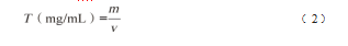 卡尔·费休试剂使用之前需要用蒸馏水进行标定,先取甲醇加入反应瓶中,甲醇的量需要在淹没铂电极,打开磁力搅拌器,边搅拌边用卡尔·费休试剂进行滴定到终点。然后用分析天平称取10 mg的蒸馏水,记录质量为m,继续进行滴定至终点,到终点之后记录滴定液消耗体积为V(mL),按式(2)计算。