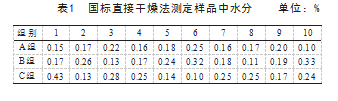 采用国标直接干燥法对3组样品分别进行检测,结果见表1。
