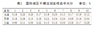 采用国标减压干燥法对3组样品分别进行检测,结果见表2。