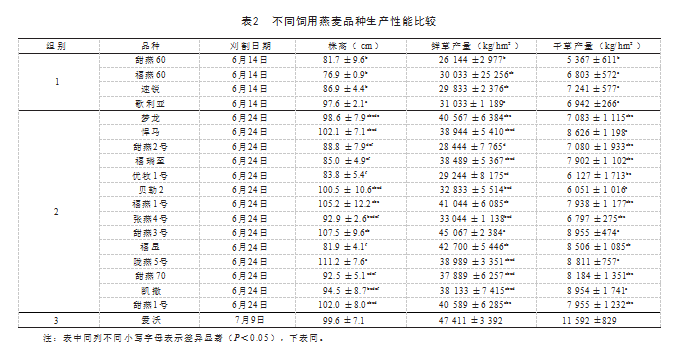 2.2复种不同饲用燕麦品种生产性能比较