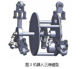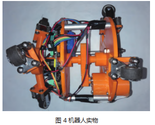本课题设计机器人的整体结构如图2所示。管道机器人整体是由螺旋驱动前体,传动构件及导向体等部件所组成。结构上基本可以分为前、中、后3部分。而对于驱动部分使用电机带动整机运动[5]。