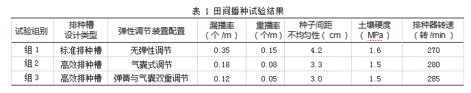 试验指标包括:漏播率,测量每米长度内漏播种子数量;重播率,测量每米长度内重复播种种子数量;种子间距不均匀性,测量相邻种子间的距离变化。