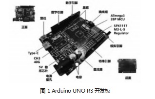选用Arduino UNO R3开发板作为下位机控制核心(图1),该主控具备较为完备的数字和模拟接口资源,配套生态成熟、成本较低,可满足温室环境参数采集、评估和报警等需求,适用于作物温室场景规模化部署[3]。