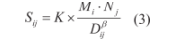 借助双阳区红旗农场群,农机服务项目沿国省道,农机服务项目沿国省道辐射,合作社平台发布需求,让12个乡镇通过线上竞单方式承接业务。根据2020—2023年订单数据,引入引力模型,计算得到空间衰减系数β=0.032,意味着服务半径每延长10 km,每亩作业价格平均下降2.1%。尽管单价下降,订单规模仍年均增长9.4%,呈反向扩张特征。溢出强度用引力公式表示如下: