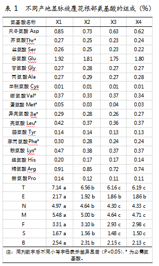 2.2不同产地显脉旋覆花根部氨基酸组成分析