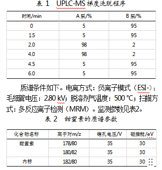 关键词:甜蜜素;超高效液相色谱-串联质谱;炒货;内标法