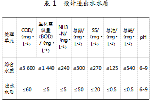 预处理系统主要包括集水池、隔油池、溶气气浮、综合调节池、事故池。鉴于气化废水和垃圾沥滤液中油和悬浮物含量较高,系统设计隔油池和溶气气浮进行预处理,去除大部分油和悬浮物,再送至综合调节池;甲醇废水由生产装置直接排入综合调节池,若遇事故状态,切换至事故池暂存。生活污水、冲洗地坪水及初期雨水经集水池汇集,泵入综合调节池,各股废水在综合调节池稳定水质水量。