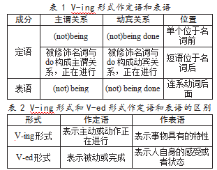 (2)compare and summarize the different functions of the V-ing form and the past participle as the attribute and the predicative;