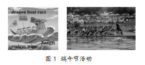 教师在这个教学环节设计了两个教学活动,第一个教学活动是利用多模态手段,向学生展示了端午节活动的图片(图1),并提出问题:“Which festival is it?What are the traditional celebration activities?”。