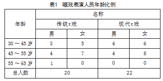 根据表1所示,τ戏剧团中的演员年龄主要集中在45~55岁,老龄化特征明显。所以,当下τ戏团引进新的表演人才是必要的,这样才能保证τ戏能在文化的长河中传承下去。
