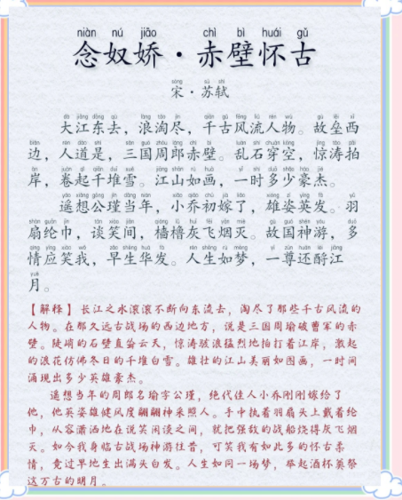 印青是我国当代著名的作曲家,创作了诸多经典的歌剧、舞剧音乐、创作歌曲、音乐剧、影视音乐等。20世纪90年代,深受古典文化影响的印青先生出于对三国时期历史的热爱,为这首著名的古诗词进行了谱曲,使其成了传唱不衰的经典之作。通过此曲,人们对壮观绮丽、风景如画的赤壁矶也有了更音乐化的感知体验。