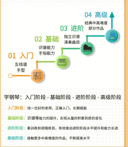 相关工作者在培养钢琴即兴伴奏与弹唱能力的过程中,基于强化基础乐理学习是非常重要的,通过系统学习教材和借助网络课程等提高学习效果。相关工作者在系统学习教材的过程中,可通过有针对性选择权威且系统的乐理教材,将其作为重要学习材料,以高效学习。相关工作者可通过选择李重光的«基本乐理»,从最基础的音符和节拍以及节奏学起,按章节逐步深入。相关工作者通过阅读材料理解概念之后,可完成配套的练习题,在练习题中得到充分锻炼,识别音符时值和划分节拍,巩固所学知识。相关工作者在借助网络课程进行学习的过程中,可通过在互联网上学习丰富乐理教学资源,如中国大学MOOC平台上有许多高校开设的乐理课程,跟随课程讲解,与老师和其他学习者互动交流,不懂的问题及时提问;并观看一些乐理知识的短视频,如抖音或者B站上的相关科普视频,以生动有趣的方式加深对知识点的理解。相关工作者为进一步强化基础乐理学习效果,也可通过分析乐谱达成既定的目标。相关工作者可通过选取不同风格和难度适中的钢琴乐谱,观察乐谱中的音符和节奏以及调号等元素;分析旋律走向,分析和声的配置,如在一首C大调的乐曲中找出主和弦、属和弦、下属和弦出现的位置,理解其在音乐进行中的作用。