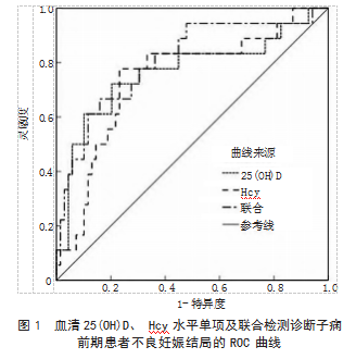 血清 25(OH)D、 Hcy 水平联合检测在子痫前期患者不良妊娠结局诊断中的效能论文