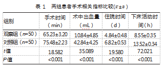 2.1两组患者手术相关指标比较
