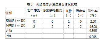 ③两组并发症发生情况比较:并发症包括切口感染、泌尿系统感染、血肿、肠麻痹。