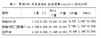 2.2影响CRC术后发生AL的多因素Logistic回归分析