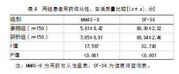 研析组MMAS-8、SF-36评分较参照组更高,差异均有统计学意义(P均<0.05)。见表4。