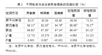综上所述,尿干化学法联合尿沉渣法诊断尿路感染有着较高的诊断准确性,更有利于后续治疗的开展。