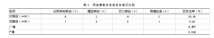 ②并发症发生情况:包括泌尿系统感染、腹腔感染、切口感染以及肠道粘连。
