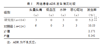 两组ADR发生率比较,差异无统计学意义(P>0.05)。见表5。