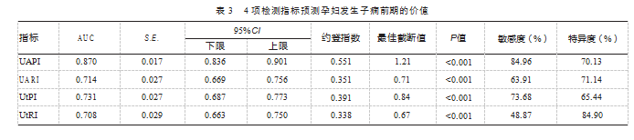 2.3 4项检测指标预测孕妇发生子痫前期的价值