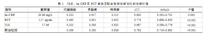 NLR 、hs-CRP 联合 PCT 检测在细菌性血流感染患者中的诊断价值论文