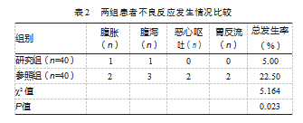 研究组不良反应总发生率低于参照组,差异有统计学意义(P<0.05)。见表2。