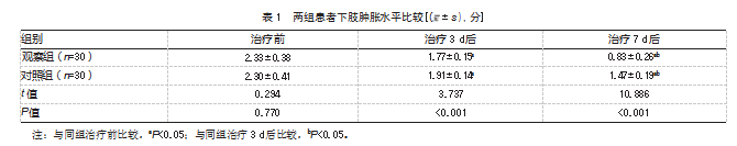 2.1两组患者下肢肿胀水平比较