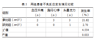 研究组不良反应发生率低于参比组,差异有统计学意义(P<0.05)。见表5。