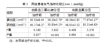 研究组动脉血二氧化碳分压低于参比组,动脉血氧分压高于参比组,差异均有统计学意义(P均<0.05)。见表3。