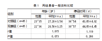 回顾性选取2021年1月—2024年1月南京市六合区人民医院诊治的90例异位妊娠患者的临床资料。按用药方案不同分为对照组(甲氨蝶呤)和观察组(米非司酮联合甲氨蝶呤),每组45例。两组患者一般资料对比,差异均无统计学意义(P均>0.05),具有可比性。见表1。本研究经南京市六合区人民医院伦理委员会审核批准(LHLL2024030)。