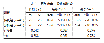 分析组治疗有效率为97.92%,高于传统组的83.33%,差异有统计学意义(P<0.05)。见表2。