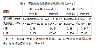 2.1两组患者心肌损伤标志物比较