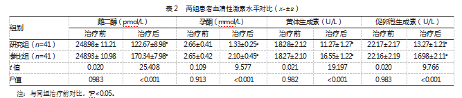 2.2两组患者血清性激素水平对比