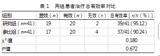 2.1两组患者治疗总有效率对比