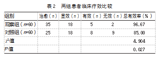 2.1两组患者临床疗效比较