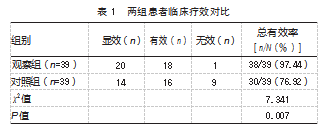2.1两组患者临床疗效对比