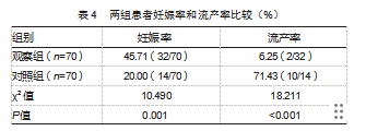 2.4两组患者妊娠率和流产率比较