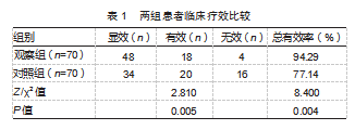 2.1两组患者临床疗效比较