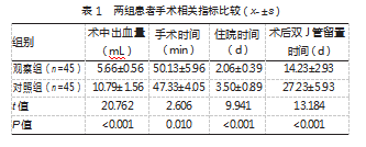 2.1两组患者手术相关指标比较