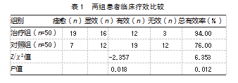 2.1两组患者临床疗效比较