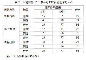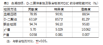 2.2血凝四项、D-二聚体对DIC的检出情况