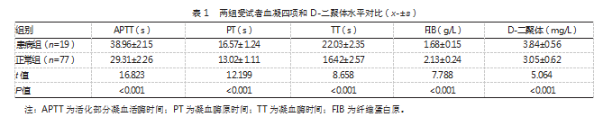 2.1两组受试者血凝四项和D-二聚体水平对比